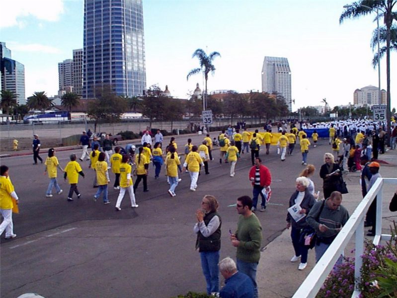 10日中午,美国学员凯文打电话来告诉我们这个游行的事。他也是刚听说就立即打电话去找主办单位─郡政府联系。主办单位一口答应了。因为时间已经很晚,大家立即分头通知。因为这个游行规模很大,我们马上和洛杉矶学员联系希望他们来些学员。