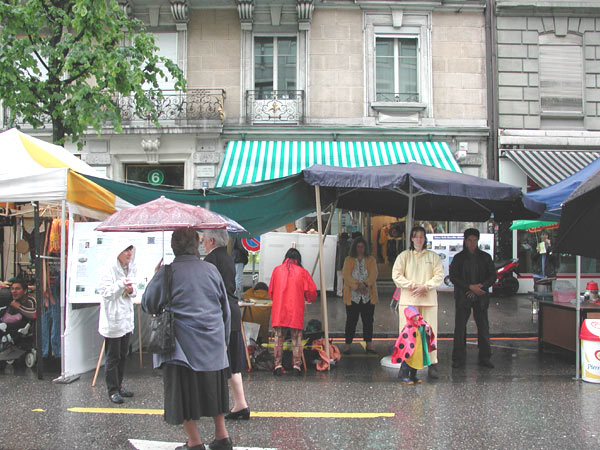 这一天,虽然下着大雨,但瑞士的大法弟子们怀着崇高的目的以一颗纯净的心,带上几种文字的大法资料不约而同地从四面八方奔向福利堡。有的来自世界名城日内瓦,有的来自首都伯尔尼(Bern),有的来自边界城市巴塞尔(Basel),有的来自……