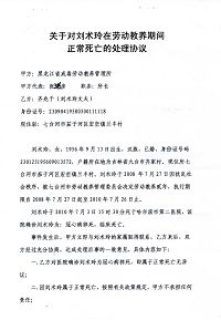 (下图是中共伪造的病例和强迫刘术玲家属签的协议)
