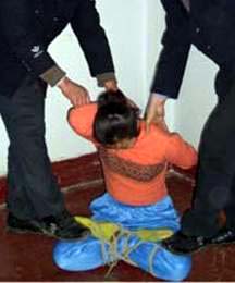 五月下旬,因我拒绝转化,他们就把我带到东岗,那是个刑讯逼供的地方。恶警张磊(黑山人)让我写放弃修炼法轮功的所谓悔过书等“三书”,我不写。她就问我为什么不写,我说,“大法好,大法能祛病健身。”她见我不配合她,就罚我站了一上午军姿。接下来的七八天,每天不是站就是蹲,邪悟者黄立逼我写三书。张磊还给我上了绑刑,两条腿盘上,然后用绳捆上,一直到我出汗了她们才把我松开。然后又让我蹲着,恶警打手方叶红还口出恶言侮辱我。