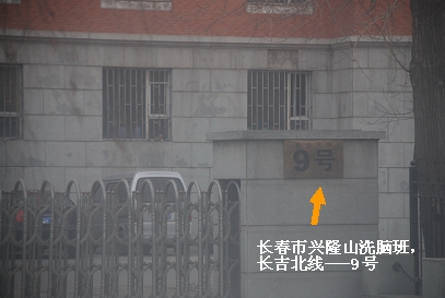 兴隆山洗脑班位于长春市东部、长吉公路北线九号,长吉公路零公里、原东荣收费站附近(收费站早已拆除)。在长春火车站坐106、114路公交车,在红旗街坐152路,在临河街坐130路在长春师范学院或赵家店市场下车。在长吉公路零公里处有一“长春师范学院”,往东走五百米左右,在公路北侧可看到一红色的五层楼房,右侧门墙上有个小黄牌子,四方形,标着“长吉北线9号”(见左下图);左侧板报上写着“长春市机电工程技术学校”,靠近伸缩门左侧是收发室,有人、好象是警察,二至五层贴着红色瓷砖,每个窗户上焊接着护栏,在楼门的左侧挂着“长春市机电工程技术学校”的牌子,洗脑班就在楼内。楼的右侧是金百合物流(见中下图),马路对面是鞭炮批发站,再往东是武警部队(有军事管理区的牌子)。由于洗脑班被多次曝光,原来右侧对外挂的“长春市法制教育培训中心”的牌子已摘下,放在楼内的三楼楼梯处。一、二楼打着教学幌子,三楼是迫害法轮功学员的地方,四楼是恶警办公