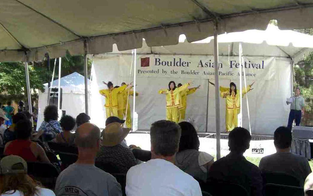 【明慧网二零一一年八月十八日】二零一一年八月十三至十四日,法轮功学员参加了第十七届美国科罗拉多州波德市亚洲节。舒缓祥和的功法演示吸引了很多参加亚洲节的民众,有的表示想要学功。