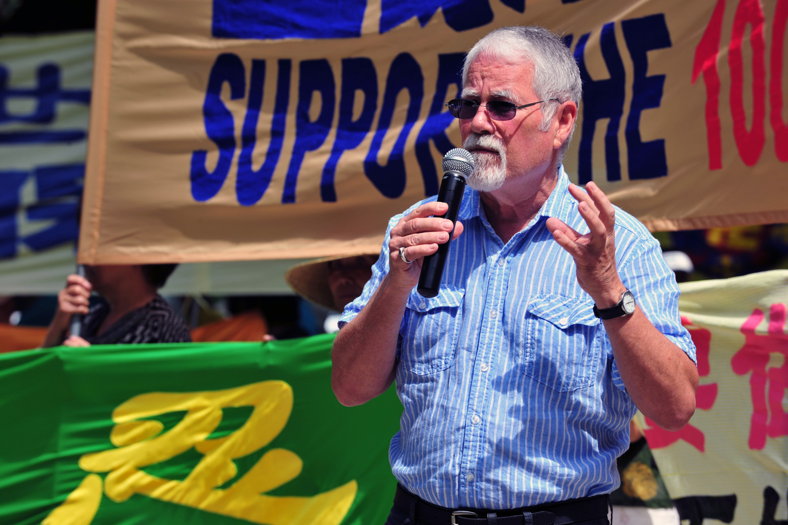 ![]() 曾身患晚期淋巴癌的黄山在集会上讲述了他走上法轮功修炼道路的过程 |