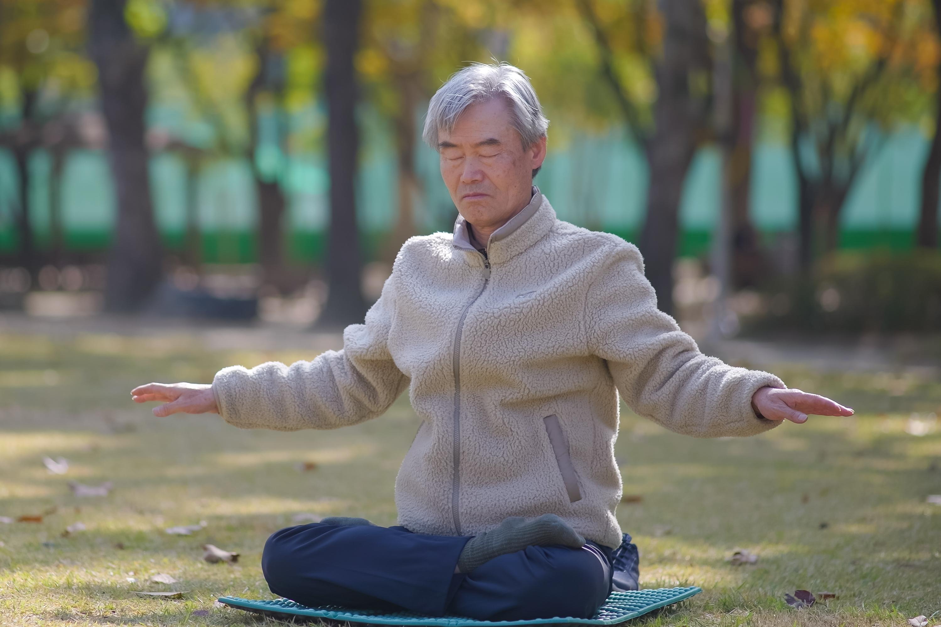 图2:正在炼法轮功第五套功法的书法家金煜汉。