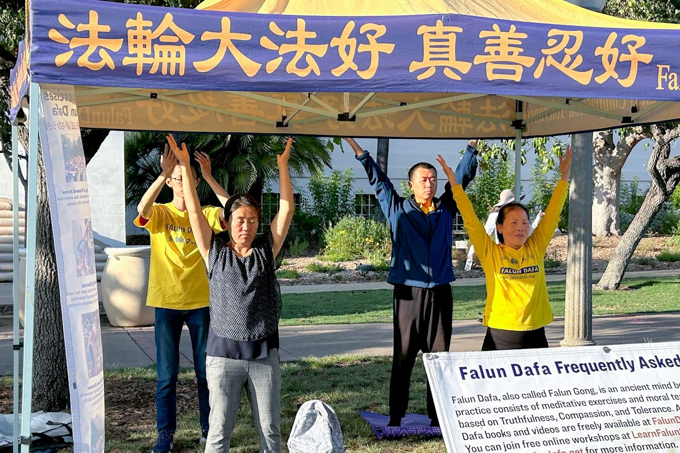 ![]() 图1:二零二四年九月二十一日,加州圣地亚哥法轮功学员在巴博亚公园(Balboa Park)举办“真善忍美展”,学员向参观者展示法轮功功法,传递法轮大法的美好。 |