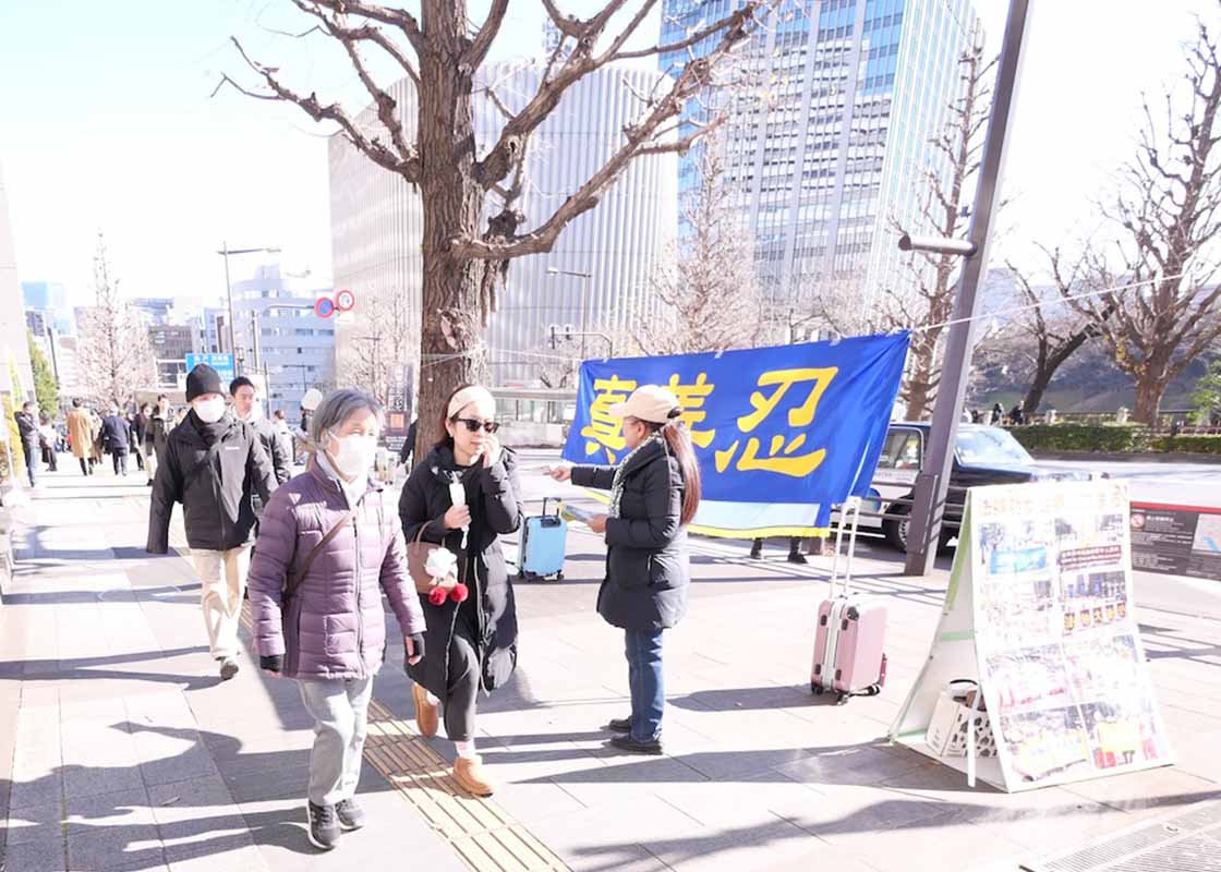 二零二五年元旦,日本关东地区的部分法轮功学员来到东京的九段下,向前来初诣(新年初次参拜)的日本人讲述法轮功真相并征签。