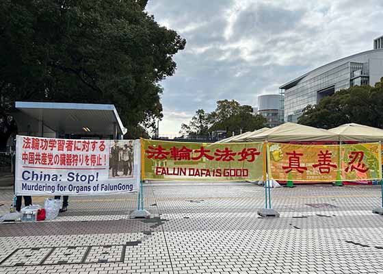 日本中部地区法轮功学员在名古屋市中心的久屋大通公园附近,向世人讲述法轮功真相、揭露中共迫害法轮功的罪行。