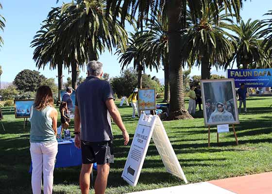 第24届尔湾地球村节在大公园举办,展示各族裔人们带来的文化、传统和艺术。法轮大法修炼者在草坪上布置了真善忍美展,并展示五套功法。