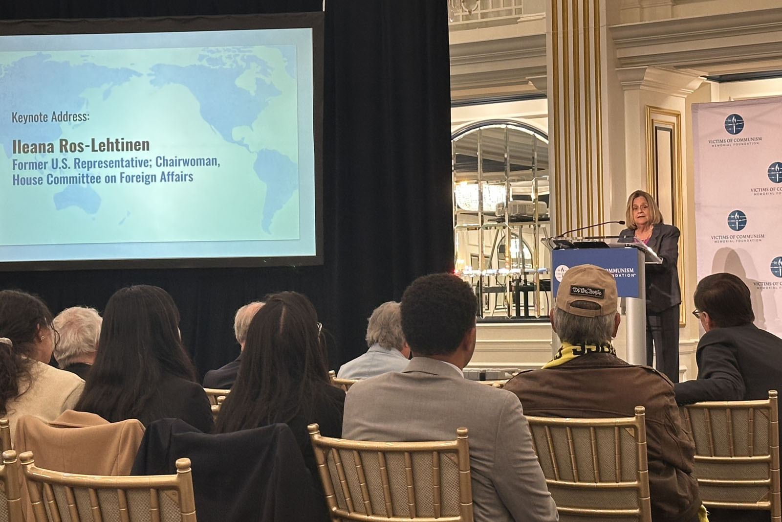 “作为美国人,作为尝过自由滋味的人们,作为人类大家庭的一员,我们的职责是与那些仍然生活在黑暗中的人们站在一起。我要告诉世界各地每一位共产主义的受害者,你们没有被遗忘。你们并不孤单。你们的勇气激励着我们,我们将永不停止地捍卫你们的自由。”她说。