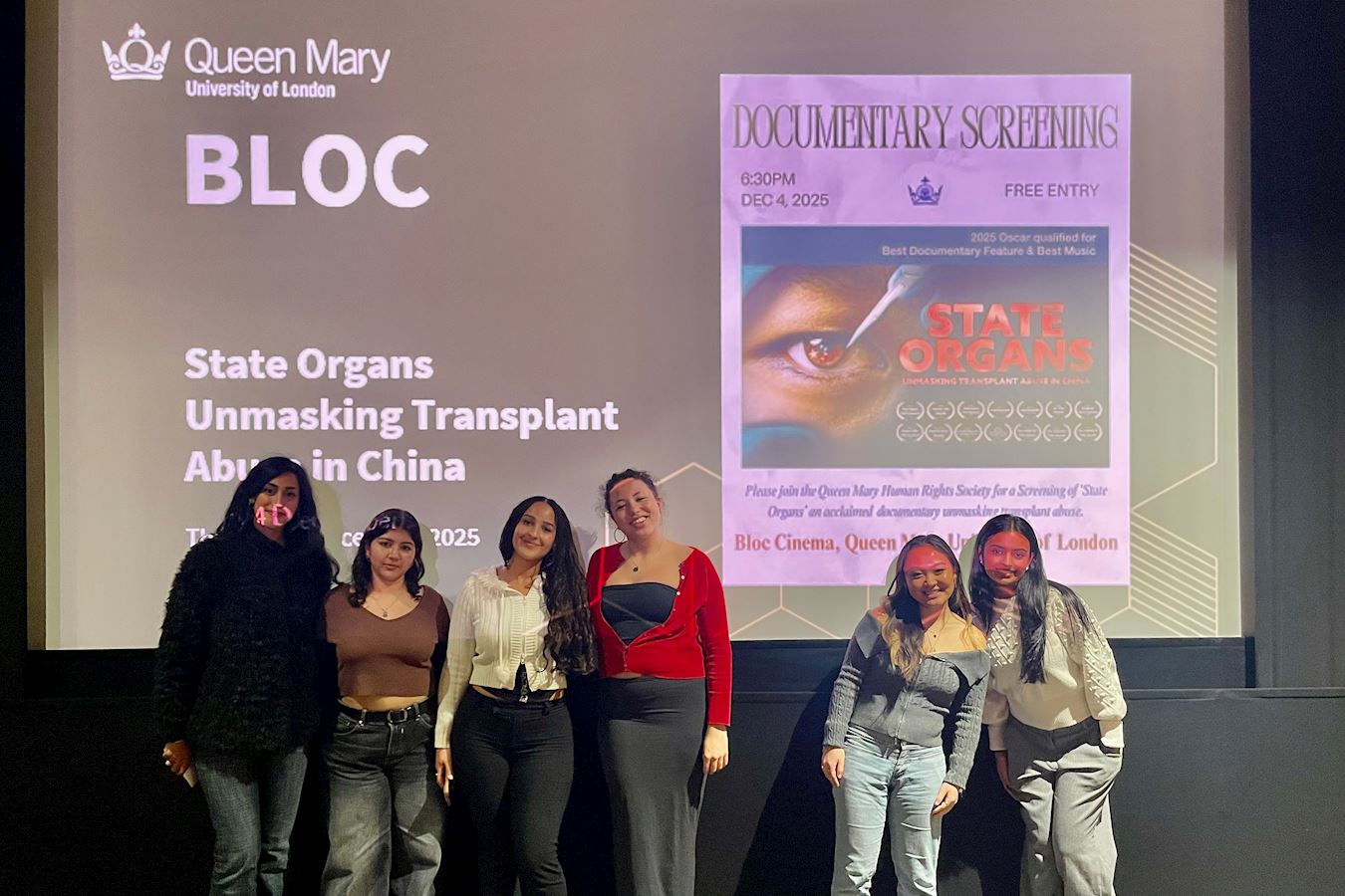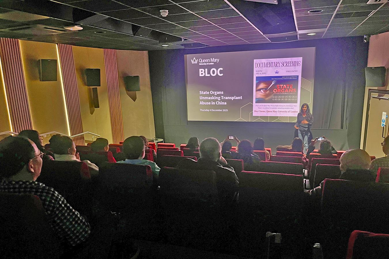 ![]() 图1~2:二零二五年十二月四日,揭露中共活摘法轮功学员器官罪行的纪录片《国有器官》在英国伦敦玛丽女王大学(Queen Mary University)放映。 |