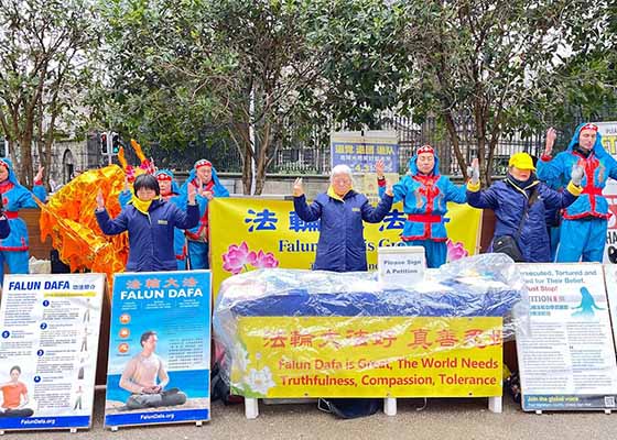 二月八日,法轮功学员來到爱尔兰首府都柏林庆祝即将到来的元宵节。从优美祥和的功法展示、到游弋飞腾的金龙表演,吸引行人驻足、拍照。