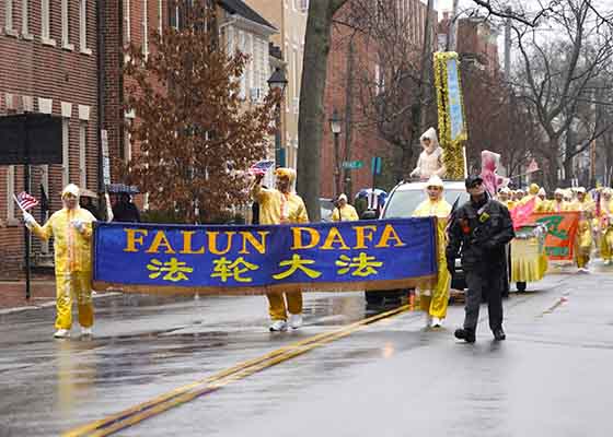 二月十五日,美国弗吉尼亚州的亚历山德里亚举行了总统日游行,庆祝美国国父乔治华盛顿诞辰293周年。法轮功学员第三次参加当地的总统日游行,传递法轮大法真善忍的福音。他们的游行队伍得到评委的一致好评,荣获成人军乐队类第一名。