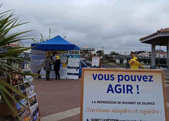 法轮功学员4月12日在圣吉勒-克鲁瓦德维举办了信息日活动,向人们介绍法轮功、演示法轮功功法,讲述法轮功学员在中国遭受迫害的事实。