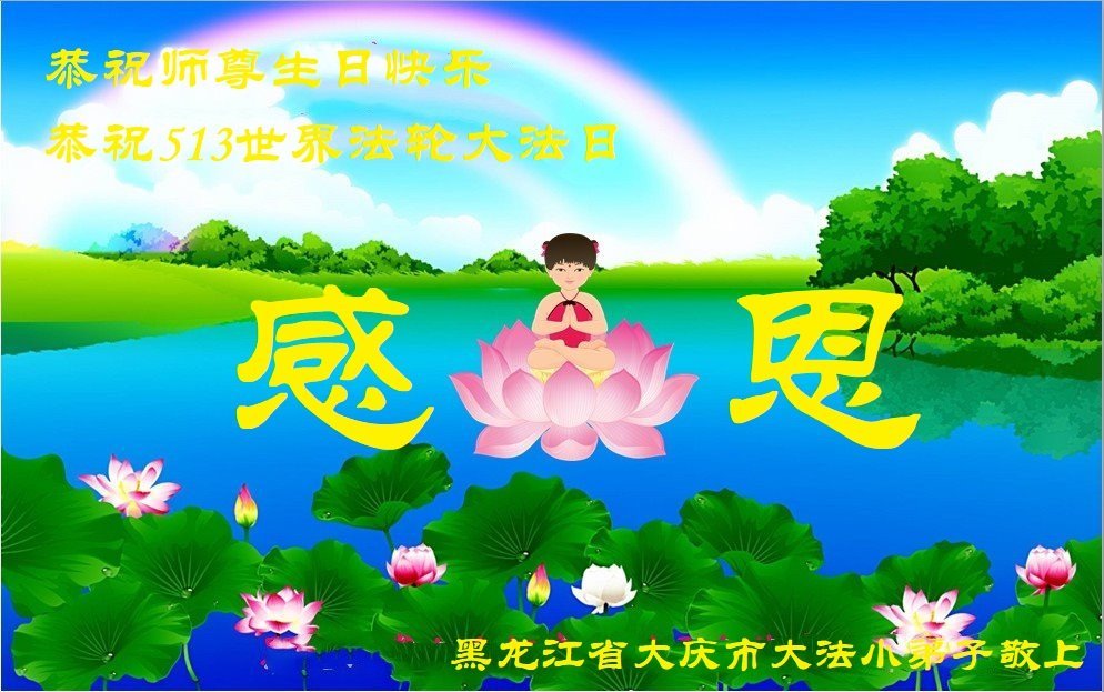 吉林省长春市大法小弟子恭贺世界法轮大法日!恭祝师尊生日快乐!黑龙江省大庆市大法小弟子恭祝师尊生日快乐!感恩师尊慈悲苦度!