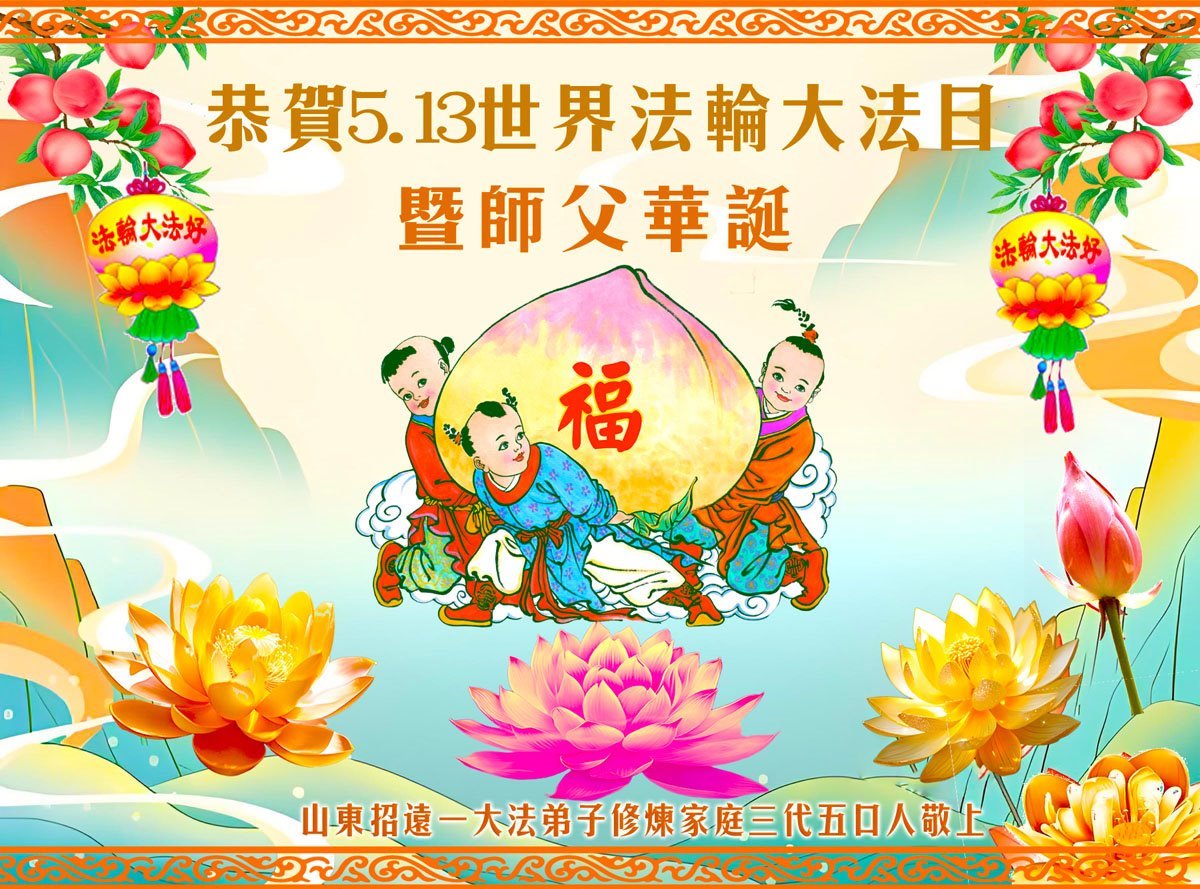中国大陆受益于法轮大法的百姓纷纷发来贺词,讲述自己或自己的家人因敬重大法,诚心念诵“法轮大法好,真善忍好”,而身体痊愈的经历。
