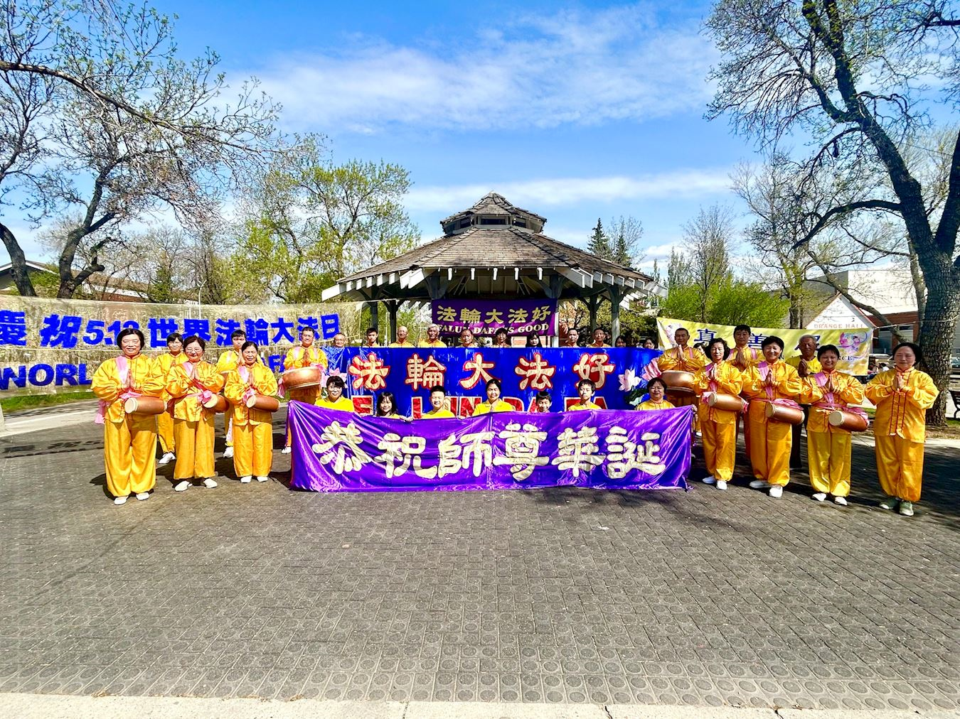 五月十日,加拿大亚伯塔省省会埃德蒙顿的大法弟子,在老司考纳农贸市场欢庆五·一三世界法轮大法日,纪念法轮大法弘传世界三十三周年。