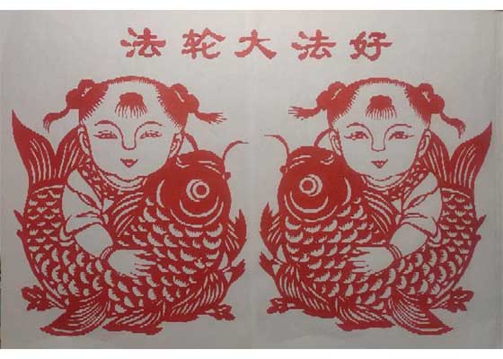【庆祝5.13】剪纸:喜娃送福(法轮大法好)