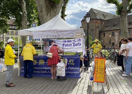 五月的天气温暖宜人。来自法国和德国的部分法轮功学员在法国东部的阿尔萨斯地区举办了法轮功信息日活动。