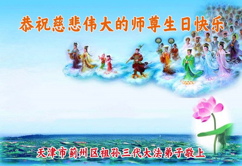 恭祝慈悲伟大的师尊生日快乐!恭贺世界法轮大法日!我在大法中身心受益,师父时时看护着我,感到了大法的洪恩。