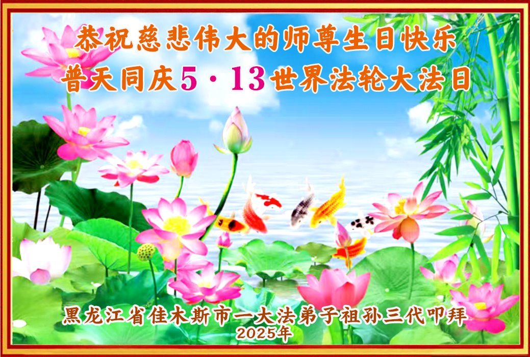 黑龙江大庆市肇州县全体大法弟子恭贺师尊华诞!恭贺世界法轮大法日!恭贺法轮大法洪传三十三周年!