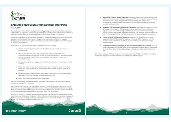 G7领导人声明谴责跨国镇压
