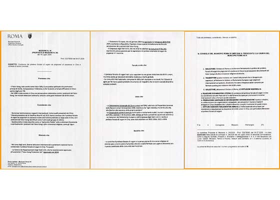 7月16日,罗马市第12行政区通过了一项动议,题为“谴责中国对良心犯强制摘取器官并请求采取具体行动”。