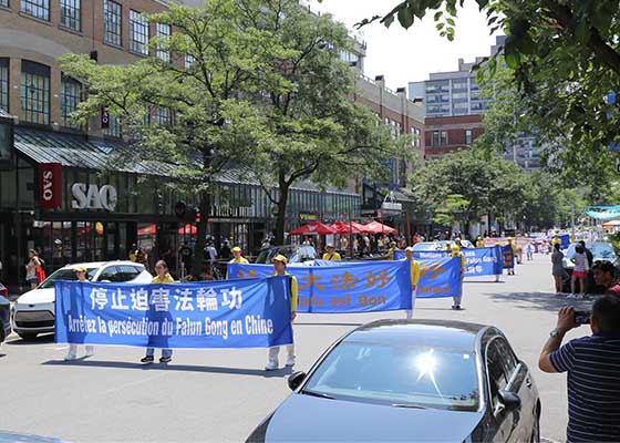 七月十九日,魁北克部分法轮功学员在蒙特利尔市中心举行游行集会,呼吁制止中共对法轮功长达二十六年的残酷迫害。