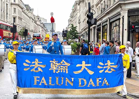 7月20日,英国法轮功学员与欧洲天国乐团,在伦敦市中心继续举办了一整天的系列活动,向国际社会揭露中共对法轮功26年的残酷迫害。