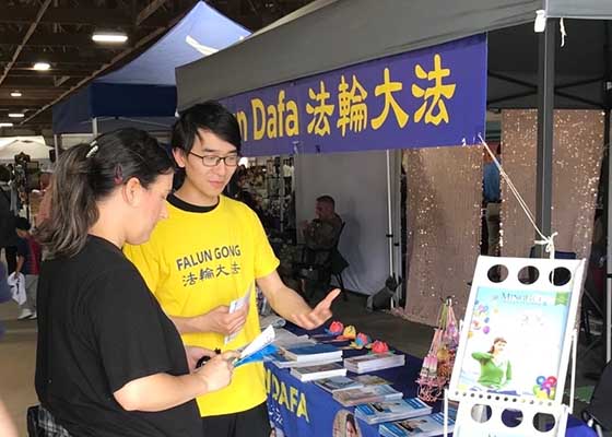 法轮功学员8月29日至9月1日参加了位于马萨诸塞州西部北安普顿的第208届三县游乐节,向当地民众介绍法轮大法真善忍的美好与传递希望。